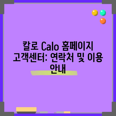칼로 Calo 홈페이지 고객센터: 연락처 및 이용 안내
