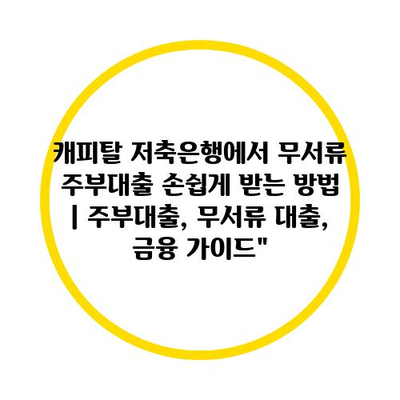 캐피탈 저축은행에서 무서류 주부대출 손쉽게 받는 방법 | 주부대출, 무서류 대출, 금융 설명서