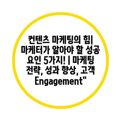 컨텐츠 마케팅의 힘| 마케터가 알아야 할 성공 요인 5가지! | 마케팅 전략, 성과 향상, 고객 Engagement