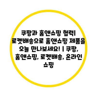 쿠팡과 홈앤쇼핑 협력| 로켓배송으로 홈앤쇼핑 제품을 오늘 만나보세요! | 쿠팡, 홈앤쇼핑, 로켓배송, 온라인 쇼핑 에 대해 자주 묻는 질문 TOP 5
