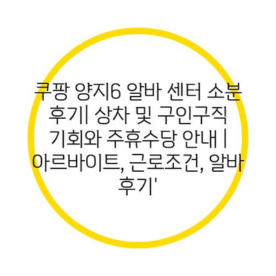 ✅ 쿠팡 양지6 알바의 실제 경험담과 유용한 팁을 알아보세요.