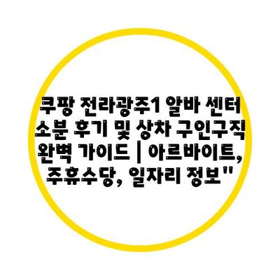 쿠팡 전라광주1 알바 센터 소분 후기 및 상차 구인구직 완벽 설명서 | 아르바이트, 주휴수당, 일자리 정보” 에 대해 자주 묻는 질문 TOP 5