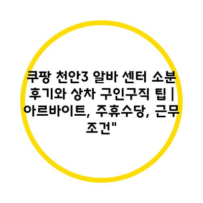 쿠팡 천안3 알바 센터 소분 후기와 상차 구인구직 팁 | 아르바이트, 주휴수당, 근무 조건에 대해 자주 묻는 질문 TOP 5