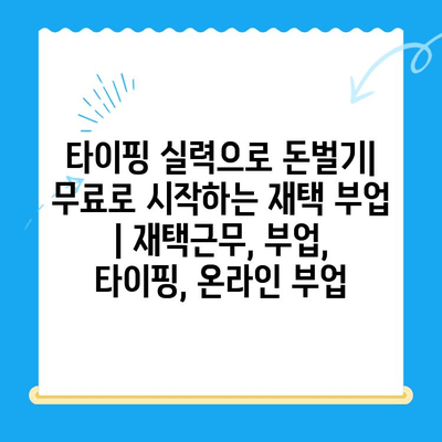 “재택근무로 시간과 경제적 자유를 얻는 방법| 타이핑 부업은 시간 관리를 통해 개인적인 시간을 확보하고, 경제적 성장을 이룰 수 있는 기회를 알려알려드리겠습니다.”