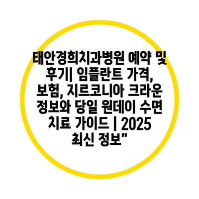 태안경희치과병원 예약 및 후기| 임플란트 가격, 보험, 지르코니아 크라운 정보와 당일 원데이 수면 치료 설명서 | 2025 최신 정보에 대해 자주 묻는 질문 TOP 5