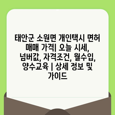 ✅ 태안군 소원면 개인택시 면허 매매 가격, 넘버값, 월수입 등 자세한 정보를 확인하고 싶으신가요? 지금 바로 확인해보세요!