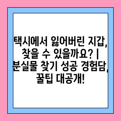 ✅ ### 버튼 설명: 택시에서 지갑 잃어버렸을 때, 어떻게 찾을 수 있을지 궁금하시죠? 실제 성공 경험담과 함께 효과적인 분실물 찾기 꿀팁을 공개합니다!