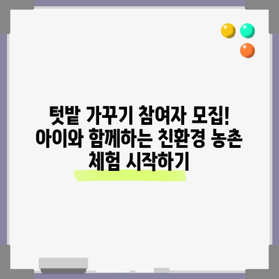 텃밭 가꾸기 참여자 모집! 아이와 함께하는 친환경 농촌 체험 시작하기