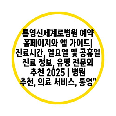 통영신세계로병원 예약 홈페이지와 앱 설명서| 진료시간, 일요일 및 공휴일 진료 정보, 유명 전연락 추천 2025 | 병원 추천, 의료 서비스, 통영” 에 대해 자주 묻는 질문 TOP 5