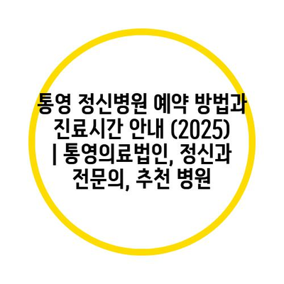 통영 정신병원 예약 방법과 진료시간 공지 (2025) | 통영의료법인, 정신과 전연락, 추천 병원 에 대해 자주 묻는 질문 TOP 5