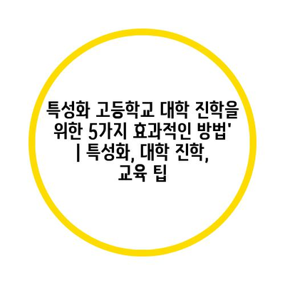 특성화 고등학교 대학 진학을 위한 5가지 효과적인 방법에 대해 알아보겠습니다.