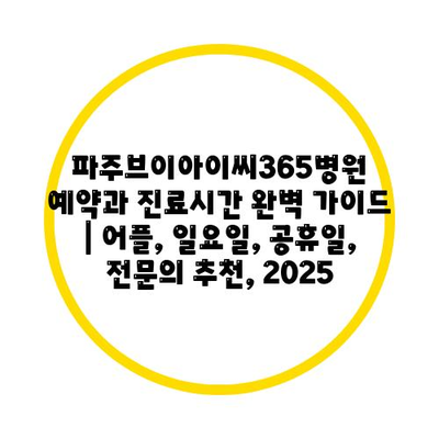 파주브이아이씨365병원 예약과 진료시간 완벽 가이드 | 어플, 일요일, 공휴일, 전문의 추천, 2025