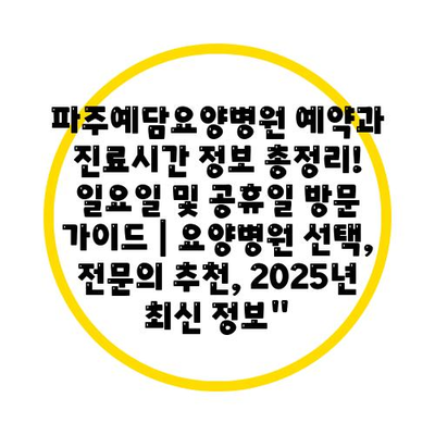 파주예담요양병원 예약과 진료시간 정보 총정리! 일요일 및 공휴일 방문 설명서 | 요양병원 선택, 전연락 추천, 2025년 최신 정보에 대해 자주 묻는 질문 TOP 5