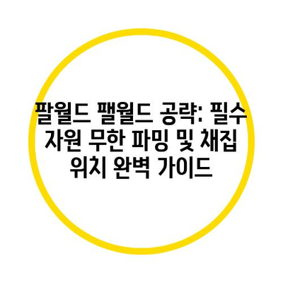 팔월드 팰월드 palworld 공략에서는 게임을 시작하기 위한 모든 필수자원을 무한으로 파밍할 수 있는 채집 위치를 소개하도록 하겠습니다. 이 글을 통해 여러분은 다양한 자원을 쉽게 수집하며, 게임을 더 즐겁고 효율적으로 진행할 수 있을 것입니다. 이제 자세히 살펴보겠습니다.