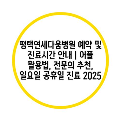 평택연세다움병원 예약 및 진료시간 공지 | 어플 활용법, 전연락 추천, 일요일 공휴일 진료 2025에 대한 내용을 알려알려드리겠습니다.