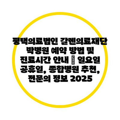 평택의료법인 갈렌의료재단 박병원 예약 방법 및 진료시간 공지 | 일요일 공휴일, 종합병원 추천, 전연락 정보 2025 에 대해 자주 묻는 질문 TOP 5