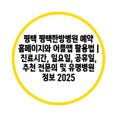 평택 평택한방병원 예약 홈페이지와 어플앱 활용법 | 진료시간, 일요일, 공휴일, 추천 전연락 및 유명병원 정보 2025에 대해 공지합니다.