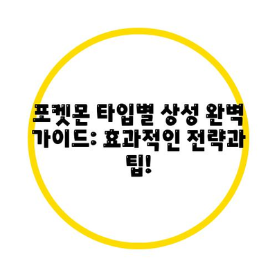 포켓몬 타입별 상성 완벽 가이드: 효과적인 전략과 팁!