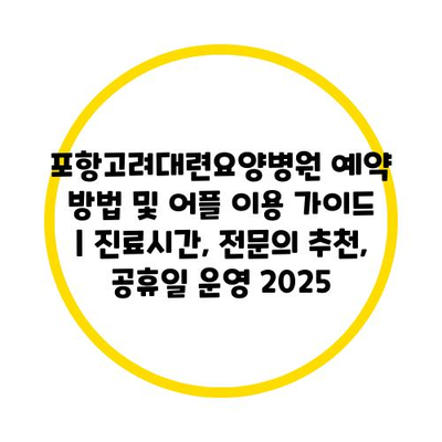 포항고려대련요양병원 예약 방법 및 어플 이용 설명서 | 진료시간, 전연락 추천, 공휴일 운영 2025에 대해 소개합니다.