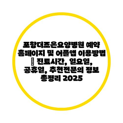 포항더조은요양병원 예약 홈페이지 및 어플앱 이용방법 | 진료시간, 일요일, 공휴일, 추천전연락 정보 총정리 2025 에 대해 자주 묻는 질문 TOP 5