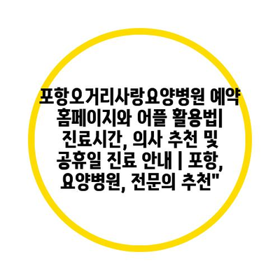 포항오거리사랑요양병원 예약 홈페이지와 어플 활용법| 진료시간, 의사 추천 및 공휴일 진료 공지 | 포항, 요양병원, 전연락 추천에 대해 자주 묻는 질문 TOP 5