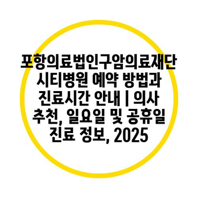 포항의료법인구암의료재단 시티병원 예약 방법과 진료시간 공지 | 의사 추천, 일요일 및 공휴일 진료 정보, 2025 에 대해 자주 묻는 질문 TOP 5