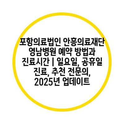 포항의료법인 안흥의료재단 영남병원 예약 방법과 진료시간 | 일요일, 공휴일 진료, 추천 전연락, 2025년 업데이트 에 대해 자주 묻는 질문 TOP 5
