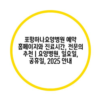 ✅ 포항하나요양병원의 진료시간과 예약 방법을 자세히 알아보세요.
