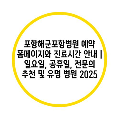포항해군포항병원 예약 홈페이지와 진료시간 공지 | 일요일, 공휴일, 전연락 추천 및 유명 병원 2025에 대하여 소개합니다.