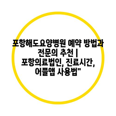포항해도요양병원 예약 방법과 전문의 추천 | 포항의료법인, 진료시간, 어플앱 사용법”