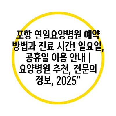 ✅ 연일요양병원의 예약 방법과 진료 시간을 자세히 알아보세요!