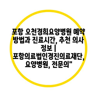 ✅ 포항 오천경희요양병원의 예약 방법과 진료시간을 지금 바로 알아보세요.