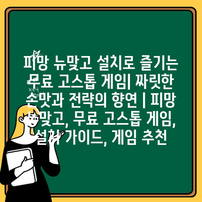 “피망 뉴맞고, 지금 바로 설치하고 무료 고스톱의 짜릿함을 느껴보세요!”