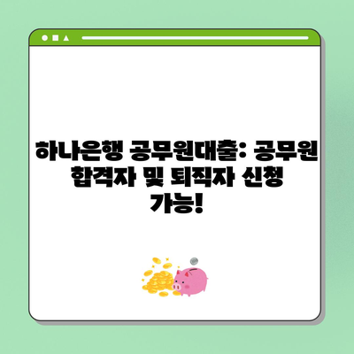 💡 하나은행 공무원 대출의 모든 정보를 한눈에 알아보세요! 💡