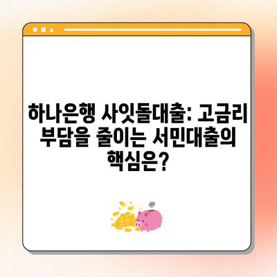 Meta Description: 하나은행 사잇돌대출은 고금리 부담을 줄여주는 서민대출로, 중·저신용자도 쉽게 이용할 수 있는 대출 상품입니다.