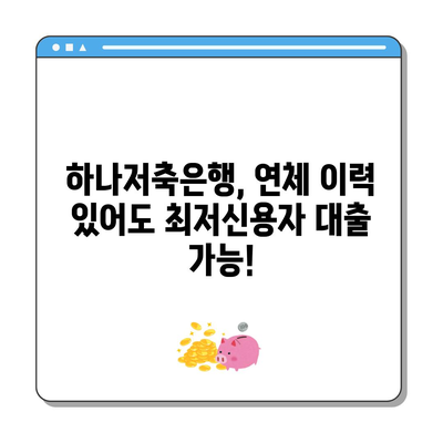하나저축은행, 연체 이력 있어도 최저신용자 대출 가능!