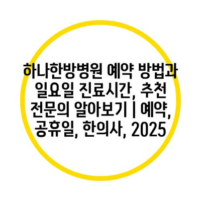 하나한방병원 예약 방법과 일요일 진료시간, 추천 전연락 알아보기 | 예약, 공휴일, 한의사, 2025에 대한 내용을 알려알려드리겠습니다.