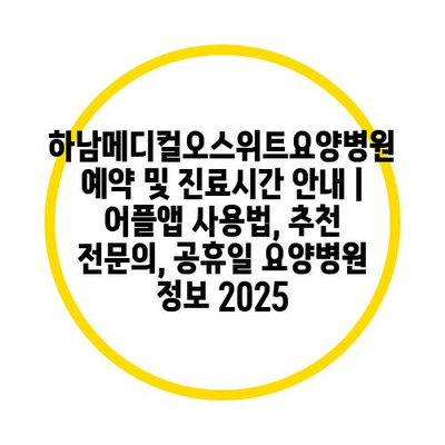 하남메디컬오스위트요양병원 예약 및 진료시간 공지 | 어플앱 사용법, 추천 전연락, 공휴일 요양병원 정보 2025 에 대해 자주 묻는 질문 TOP 5