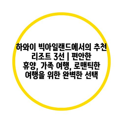 하와이 빅아일랜드는 아름다운 자연경관과 편안한 휴양을 제공하는 최고의 여행지입니다. 여기에서는 다양한 여행 스타일에 맞춘 추천 리조트를 소개합니다.