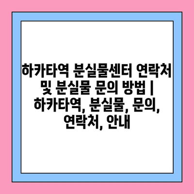 하카타역 분실물센터 연락처 및 분실물 문의 방법 | 하카타역, 분실물, 문의, 연락처, 안내