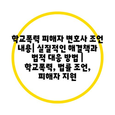학교폭력 피해자 변호사 조언 내용| 실질적인 해결책과 법적 대응 방법 | 학교폭력, 법률 조언, 피해자 지원 에 대해 자주 묻는 질문 TOP 5