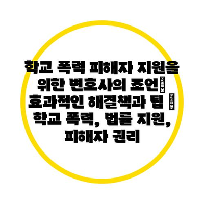 학교 폭력 피해자 지원을 위한 변호사의 조언| 효과적인 해결책과 팁 | 학교 폭력, 법률 지원, 피해자 권리에 대한 정보는 많은 사람들에게 필요한 주제입니다.