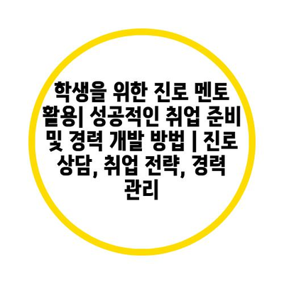 학생을 위한 진로 멘토 활용은 성공적인 취업 준비 및 경력 개발의 첫걸음입니다.