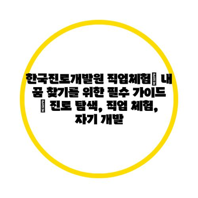 한국진로개발원 직업체험| 내 꿈 찾기를 위한 필수 설명서 | 진로 탐색, 직업 체험, 자기 개발 에 대해 자주 묻는 질문 TOP 5