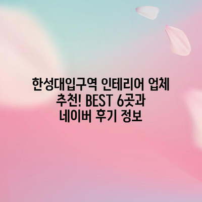 다음은 한성대입구역 주변에서 추천할 만한 인테리어 업체 6곳입니다. 각각의 업체는 특장점과 고객 후기를 고려하여 선정했습니다.