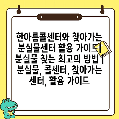 ✅ 분실물 찾는 꿀팁! 한아름콜센터와 찾아가는 분실물센터 활용법을 지금 바로 확인하세요!