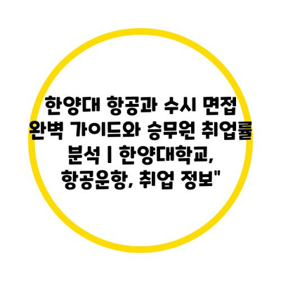 한양대 항공과 수시 면접 완벽 설명서와 승무원 취업률 분석 | 한양대학교, 항공운항, 취업 정보는 항공 분야에 관심 있는 학생들에게 매우 중요한 주제입니다.