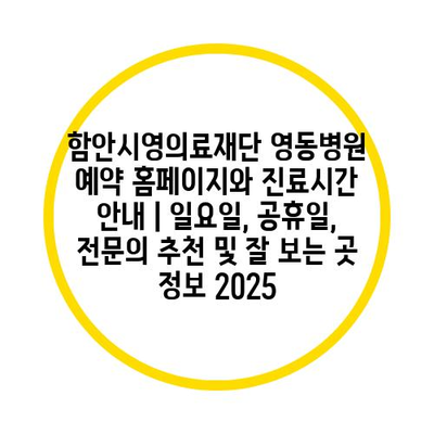 함안시영의료재단 영동병원 예약 홈페이지와 진료시간 공지 | 일요일, 공휴일, 전연락 추천 및 잘 보는 곳 정보 2025 에 대해 자주 묻는 질문 TOP 5