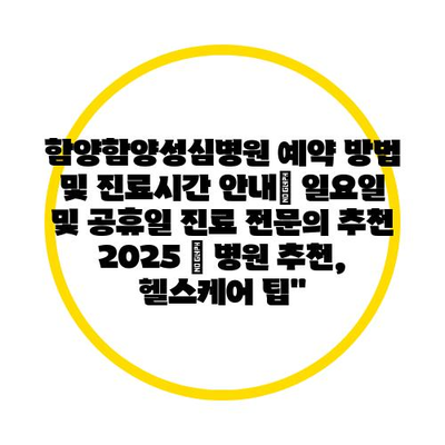 함양함양성심병원 예약 방법 및 진료시간 안내| 일요일 및 공휴일 진료 전문의 추천 2025 | 병원 추천, 헬스케어 팁”