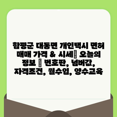 면허 양수 자격 조건은 지역별로 다를 수 있으므로, 함평군 대동면의 관련 면허 발급 기관에 연락하여 정확한 정보를 확인하는 것이 좋습니다.